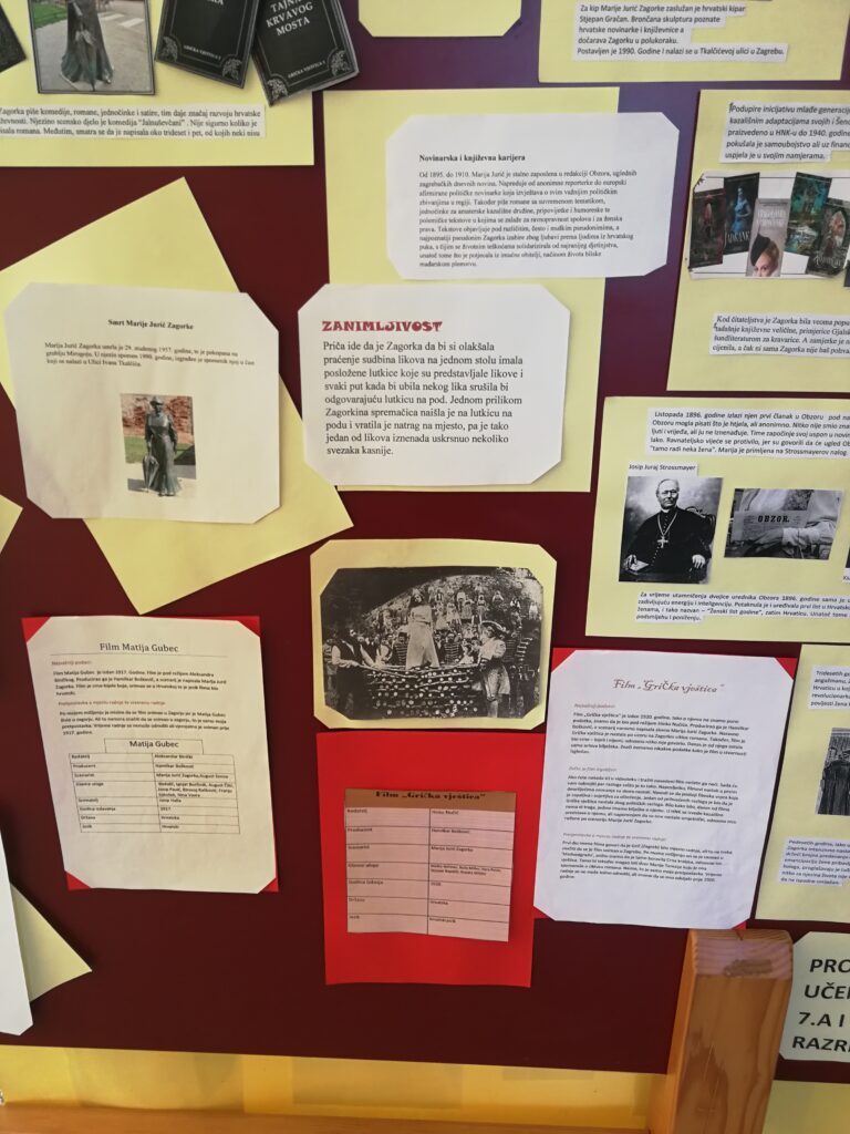 Učenici 7.a i 7.b razreda sudjelovali su u razrednom projektu naziva Hrvatski velikani: Marija Jurić Zagorka.