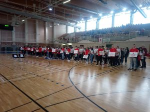 Učenici naše škole pripremili su prigodan program prilikom otvorenja natjecanja, ravnateljica škole pozdravila je sve prisutne u ime škole kao domaćina i zaželjela svima da se osjećaju kao kod kuće.
