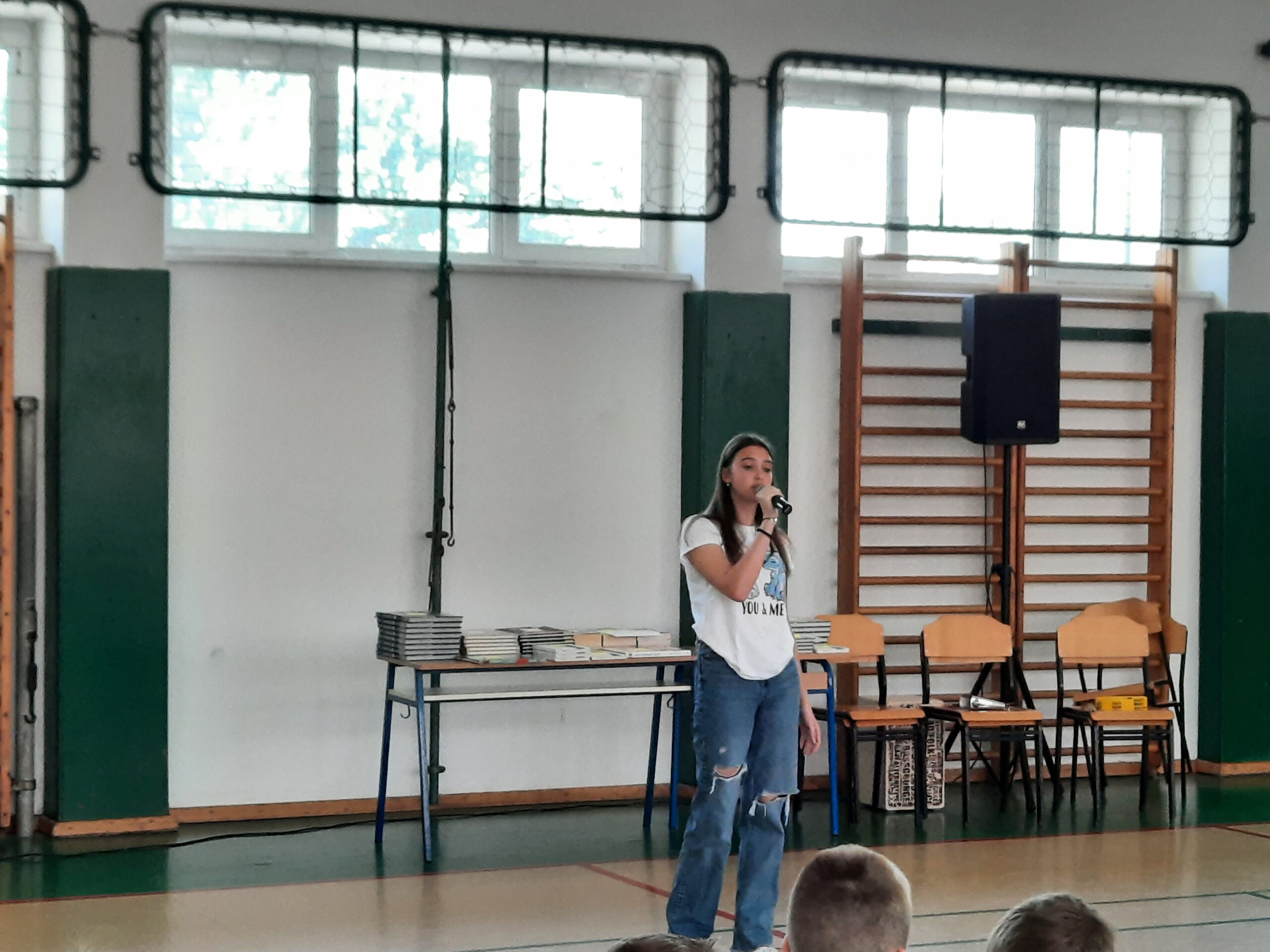 Osmašica Eva otpjevala nam je pjesmu na njemačkom jeziku, a kako je baš lijepo biti dijete, veseliti se, igrati, učiti i, možda, biti pametan te kako se život vrti u krug i stalno idemo ispočetka, čuli smo u zanimljivom monologu kojeg nam je izvela naša učenica Irma!